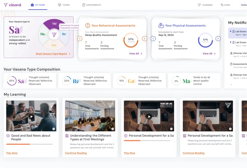 The Vasana Behavioral Genome® is the world’s first behavioral map that connects your mental, behavioral, and physical health to provide a complete picture of who you are. It helps identify hidden patterns and guides personalized care plans using neuroscience and AI.