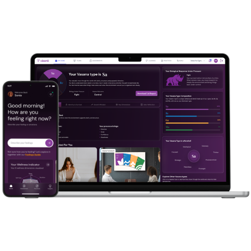 You can begin by discovering your Vasana Type through a quick diagnostic assessment. From there, your personalized dashboard and AI coach will guide your journey toward better health and performance.
